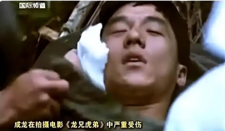 1986年在南斯拉夫拍《龙兄虎弟》,他要从悬崖跳到一棵树上,结果树枝断了,他头朝下摔在石头上,颅骨当场裂了道缝。