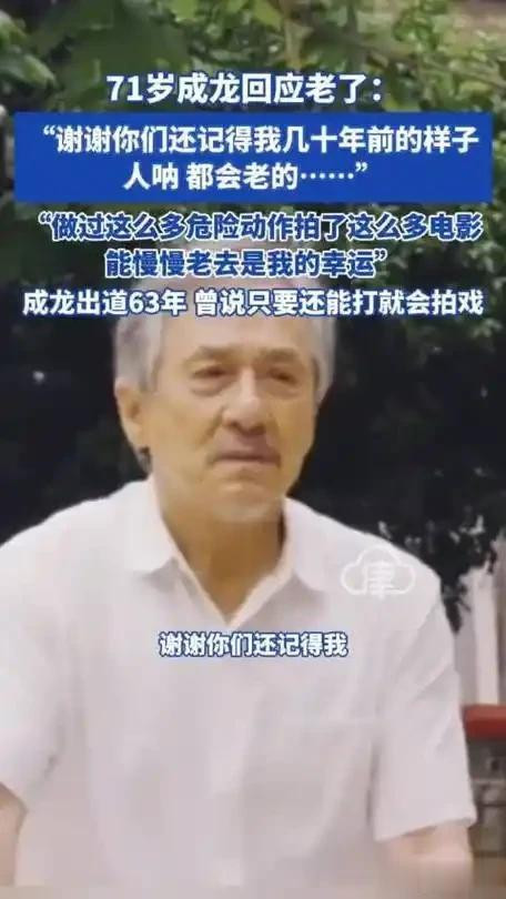 没过几天,成龙在抖音上发了个视频,没开美颜,脸上的皱纹、老年斑都清清楚楚。